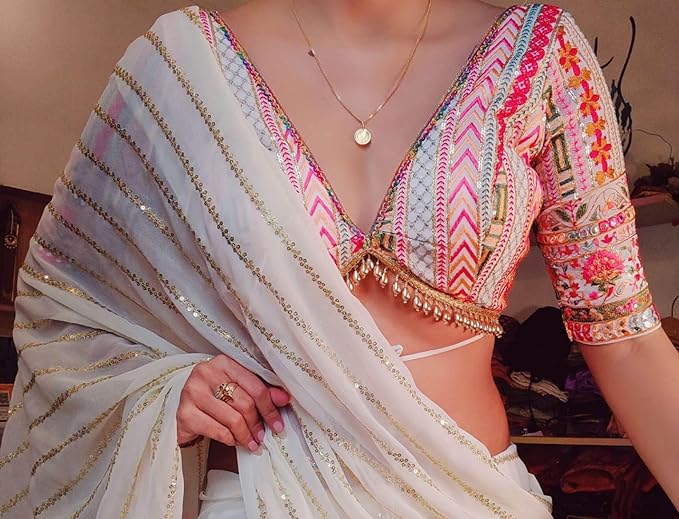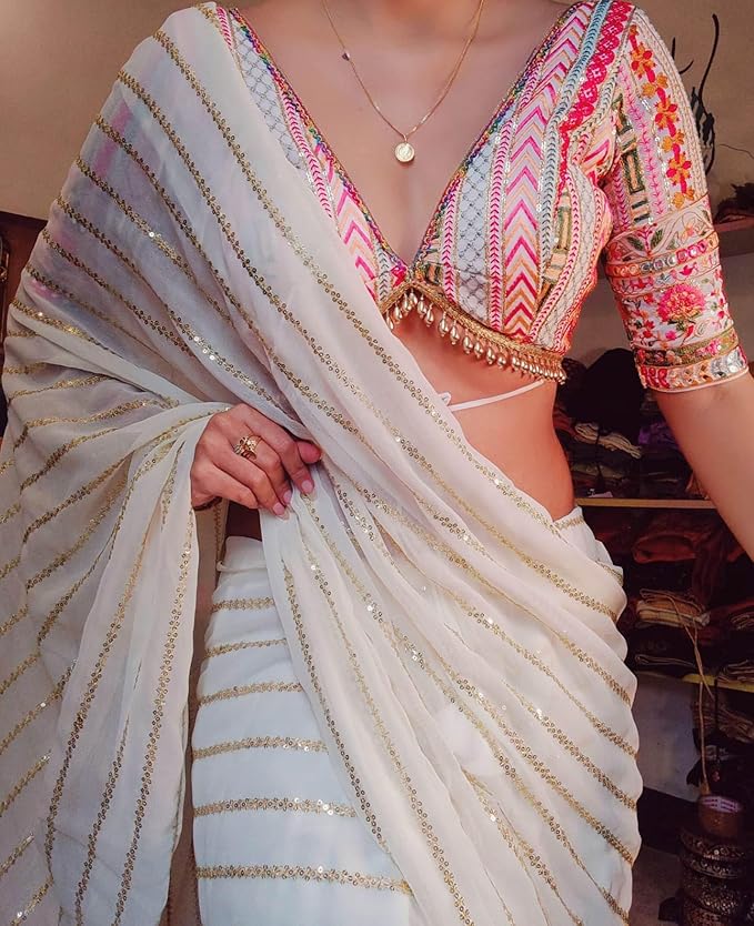 Be the first to review “BRAHMSHAKTI Womens Georgett Embroidered Saree With Blouse Piece” Cancel reply