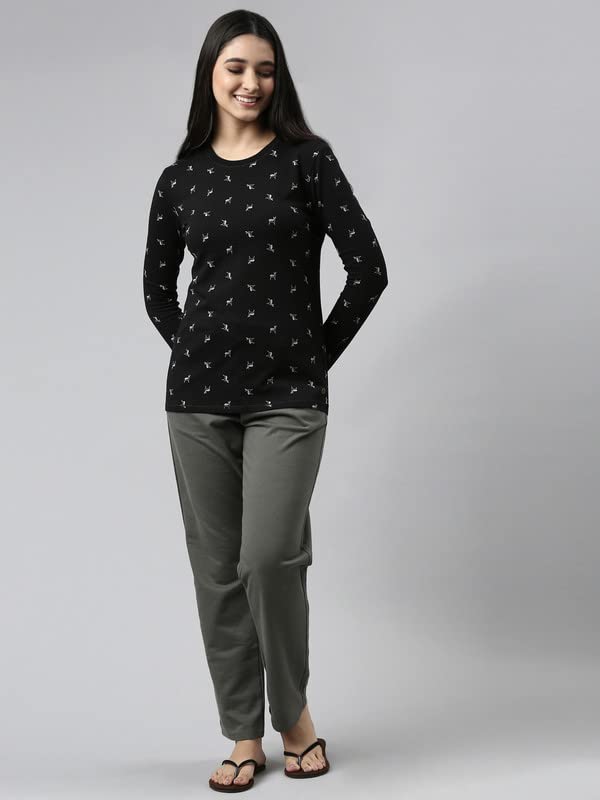 Enamor E257 Quick Dry 4 Way Stretch Antimicrobial Slim Fit Cotton Long Sleeve Crew Neck T-Shirt for Women