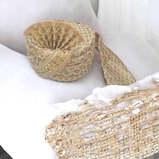 KRYPMAX Men’s Ethnic Wedding Safa/Turban/Pagdi for Dulha Marriage/pagdi for Groom, Multicolor (Size: 22 to 22.5 Inch)