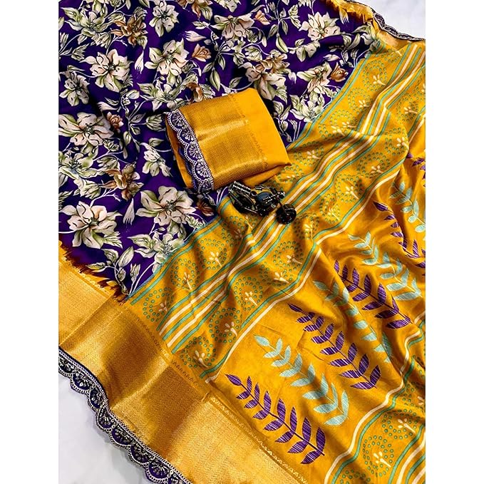 Be the first to review “Peachmode Women’s Purple Floral Printed Dola Silk Saree with Zari Border | Latest Design 2024 | Party Wear | Wedding & Festive Occasions | Ethnic Wear | Silk Saree with Unstitched Blouse Piece” Cancel reply