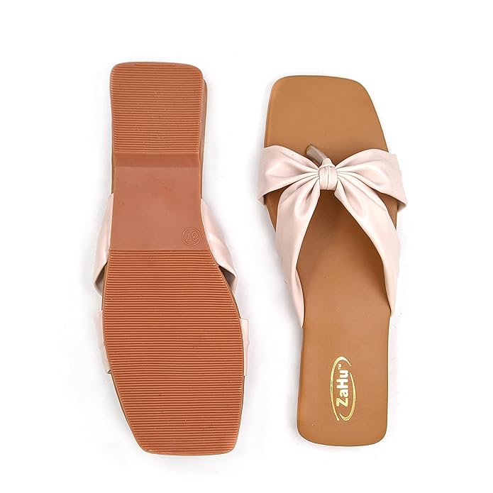 ZaHu women flats slippers stylish model fashion flat casual daily use beige cream off white sandals t-strap flip flops for girls ladies slipper chappal